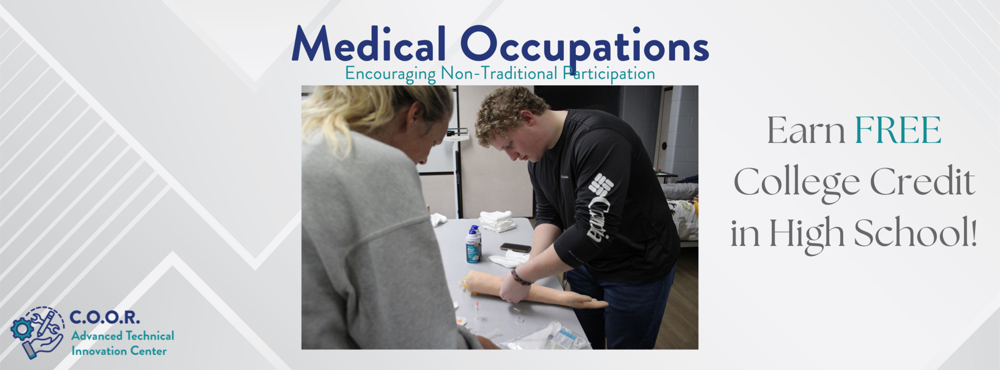 Our Medical Occupations program is located at Roscommon Middle School and is open to any local high school junior or senior within COOR ISD. Students will learn the necessary skills that care providers must have to work in any department within the medical occupations, including: medical ethics and law; effective communications; medical terminology; medical-related math; anatomy & physiology; CPR and First Aid Certification; Automatic Electronic Defibrillator (AED) training; Infection Control; Workplace Safety; and Employability and Leadership Skills. Opportunities will be available for students to participate in career exploration at a variety of work sites provided by our healthcare partners.
