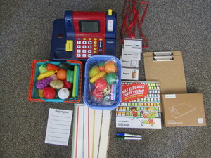Along with pictured items, a packet of Literacy items including, area signs, RX squares, Animal hospital Page, Animal checklist and more Is included to set up a play center.